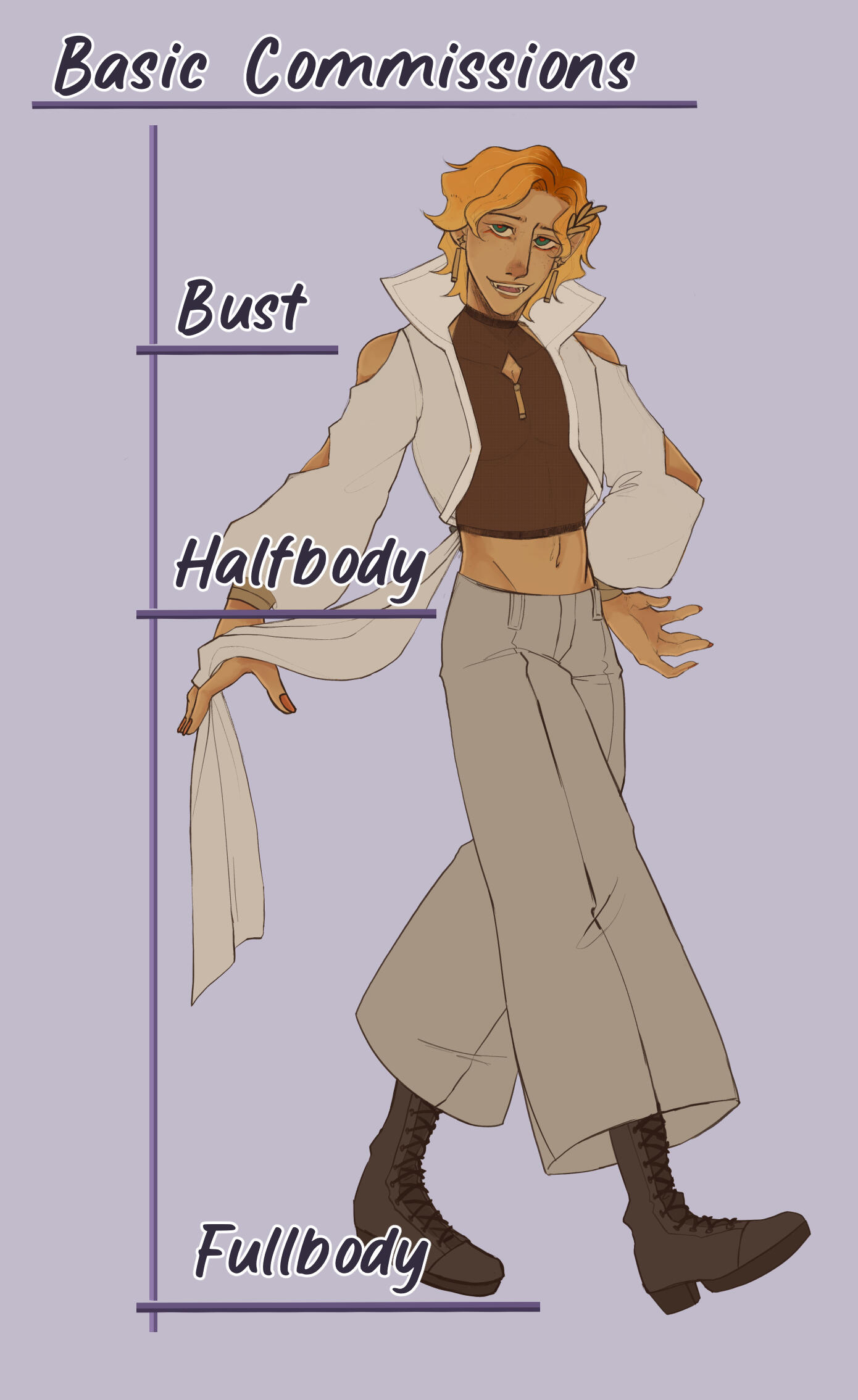 Lines Only $15 Flats $25 Simple Shading $35 Complex Shading $50Halfbody: